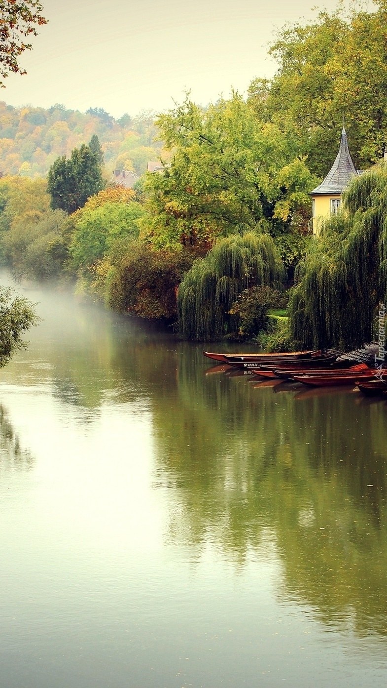 Edytor tapety: Łódki na brzegu rzeki w Niemczech
