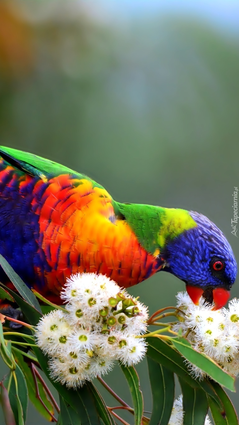 Edytor tapety: Kolorowa papuga skubiąca kwiatki