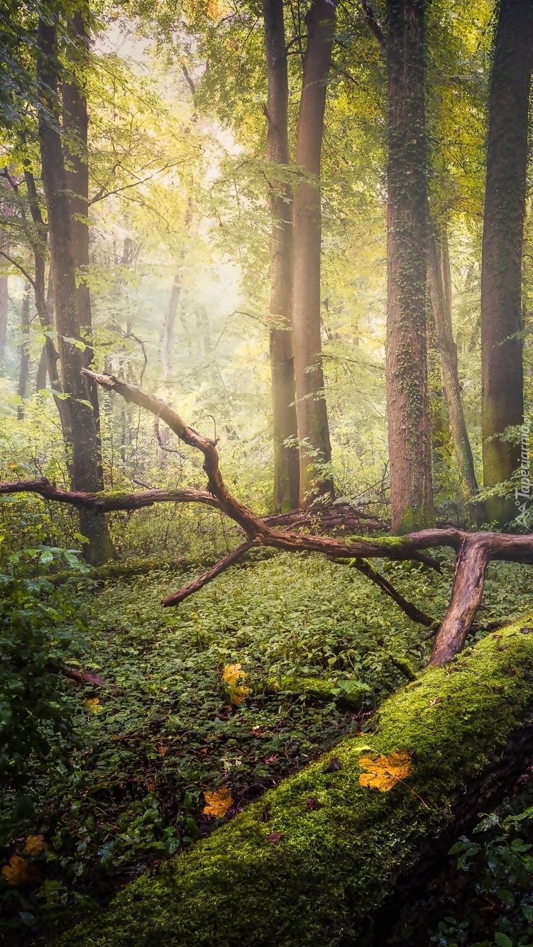 Edytor tapety: Połamane konary drzew w lesie