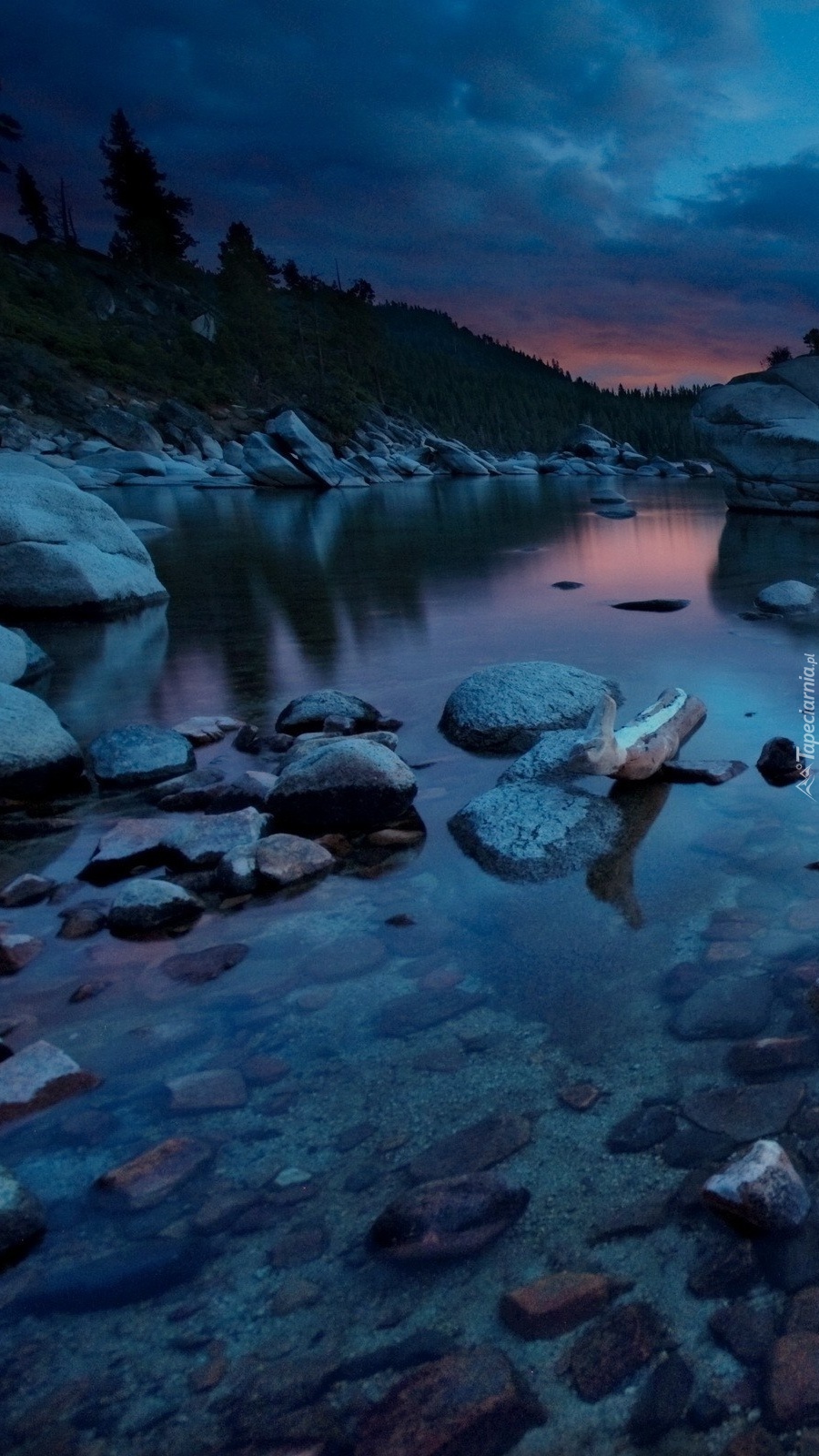 Edytor tapety: Burzowe chmury nad kamienistą rzeką