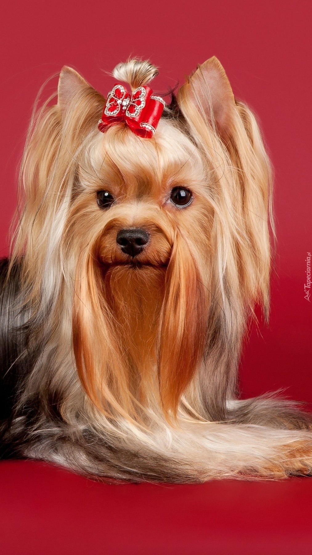 Edytor tapety: Yorkshire terrier długowłosy z kokardką
