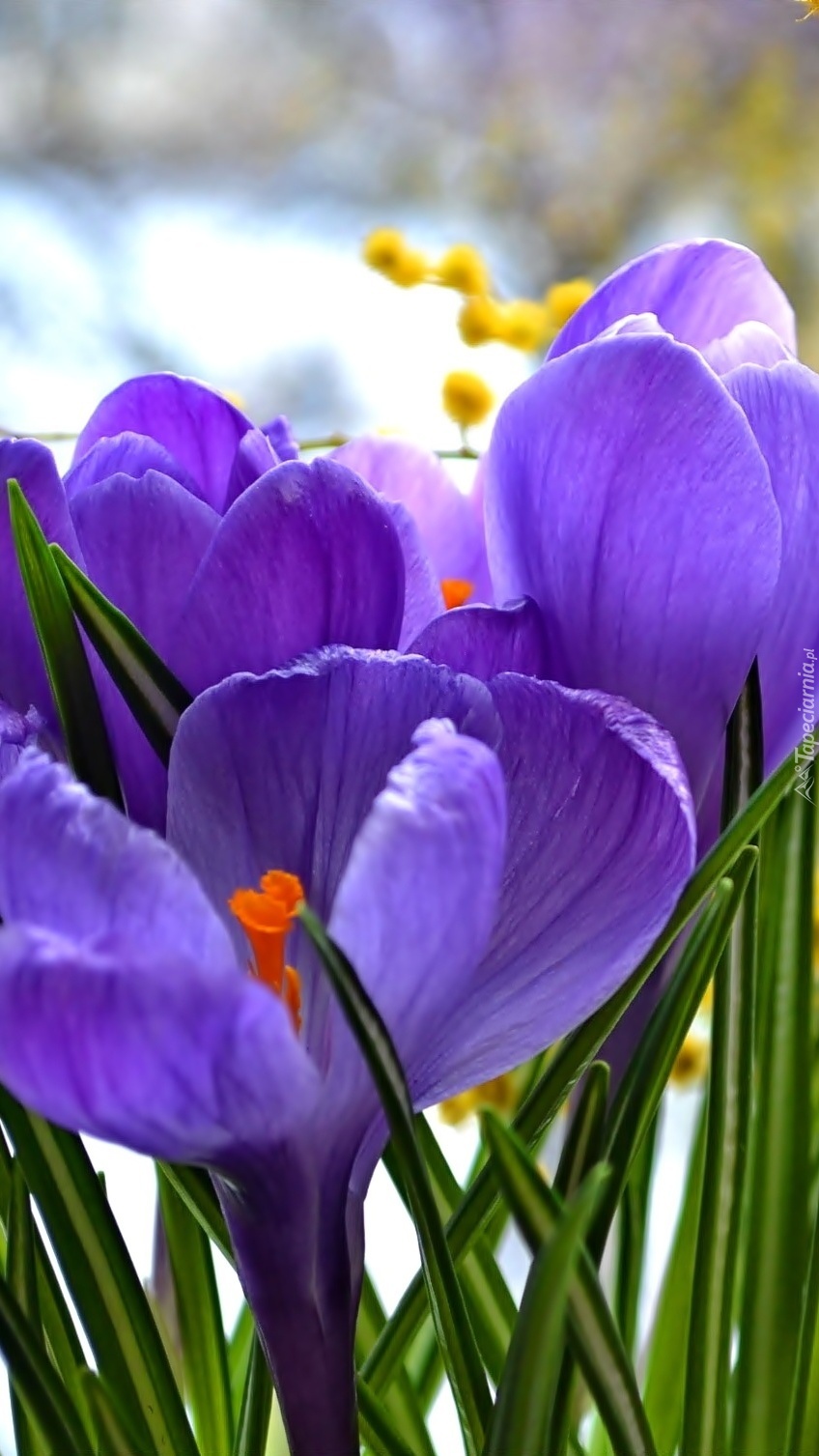 Edytor tapety: Fioletowe krokusy z pomarańczowymi pręcikami