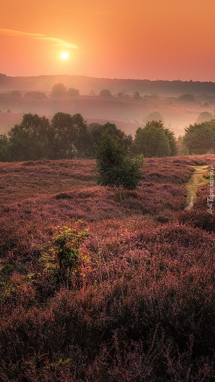Edytor tapety: Wschód słońca nad wrzosowym wzgórzem