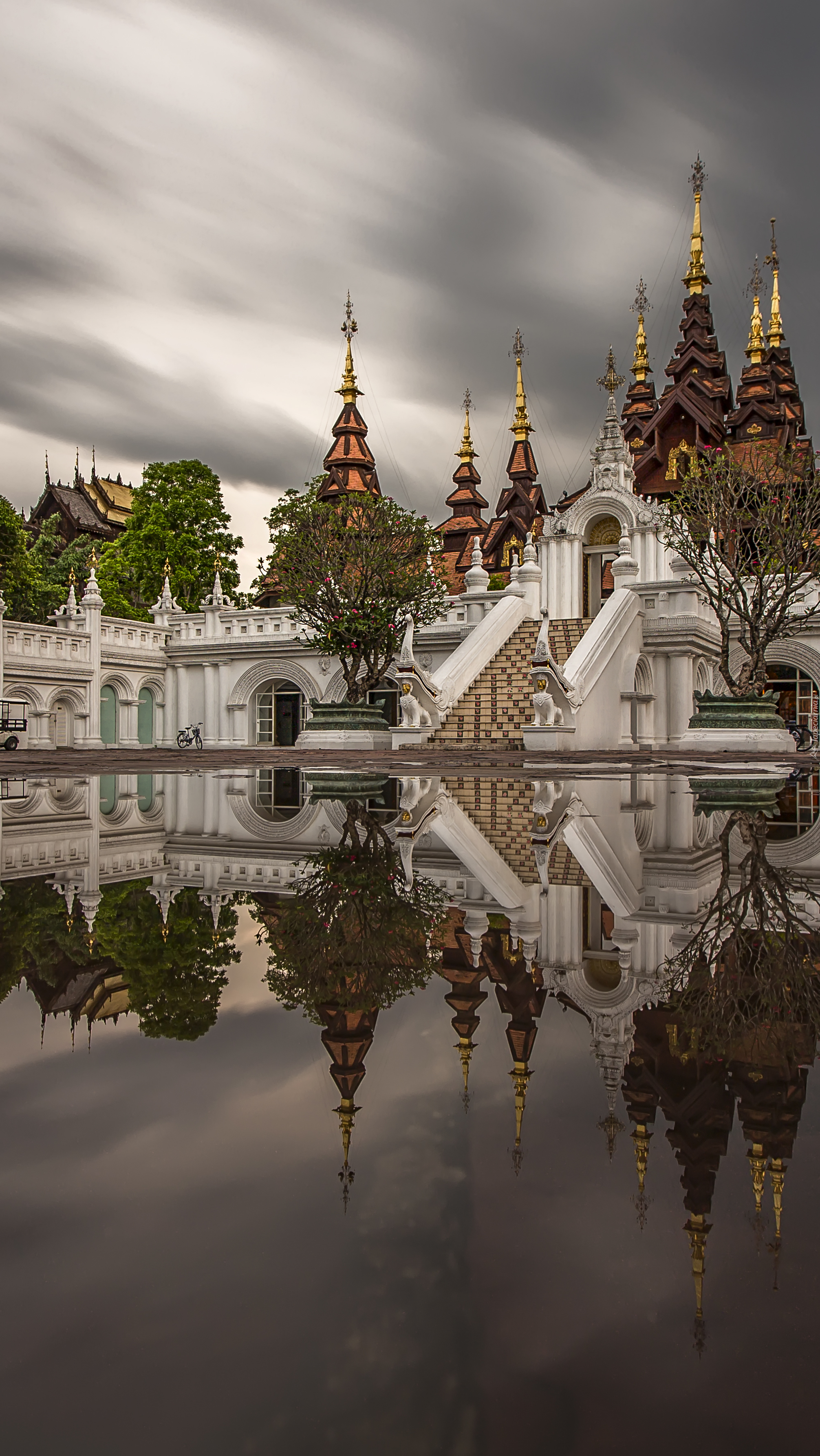 Edytor tapety: Odbicie pałacu Chiang Mai w stawie