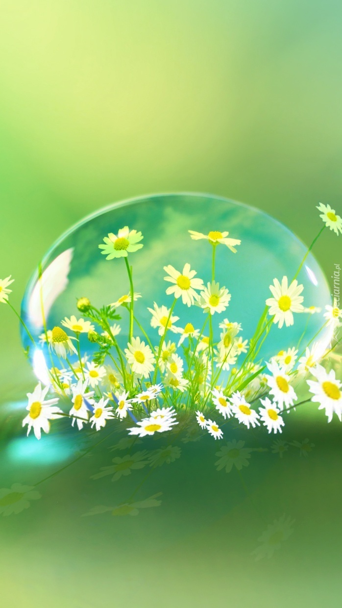 Edytor tapety: Margerytki zamknięte w kropli