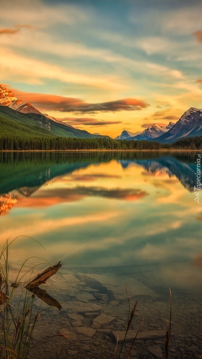 Edytor tapety: Złoty zachód słońca nad jeziorem
