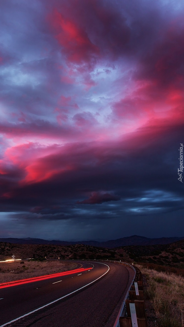 Edytor tapety: Ciemne chmury nad drogą