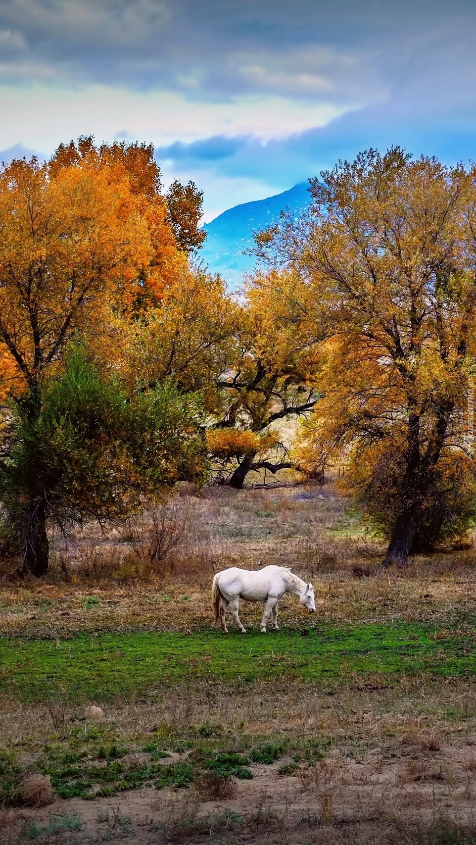 Edytor tapety: Koń pasący się na łące