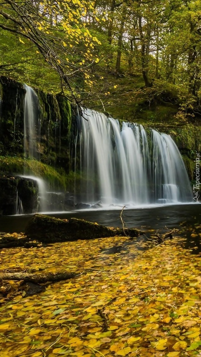 Edytor tapety: Rzeka w liściach z wodospadem