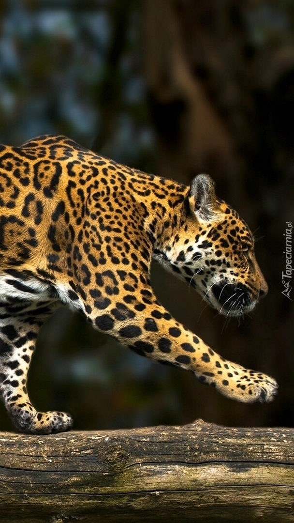Edytor tapety: Jaguar spacerujący po kłodzie