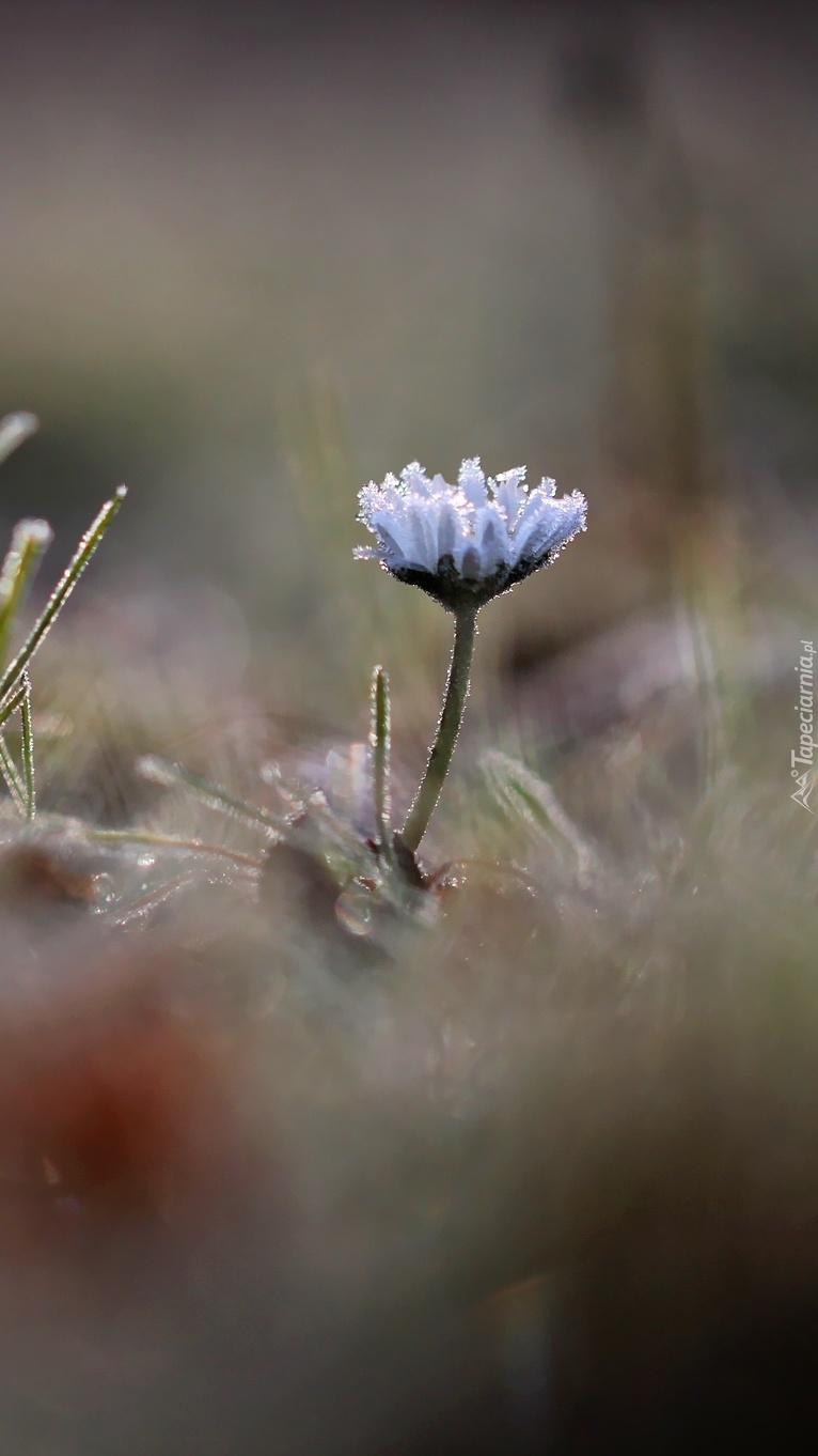 Edytor tapety: Zmarznięta stokrotka w trawie