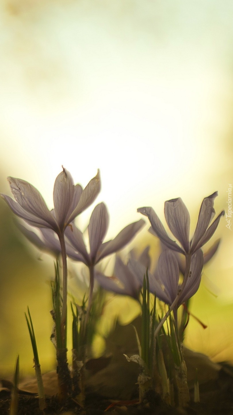 Edytor tapety: Rozmyte krokusy z liśćmi
