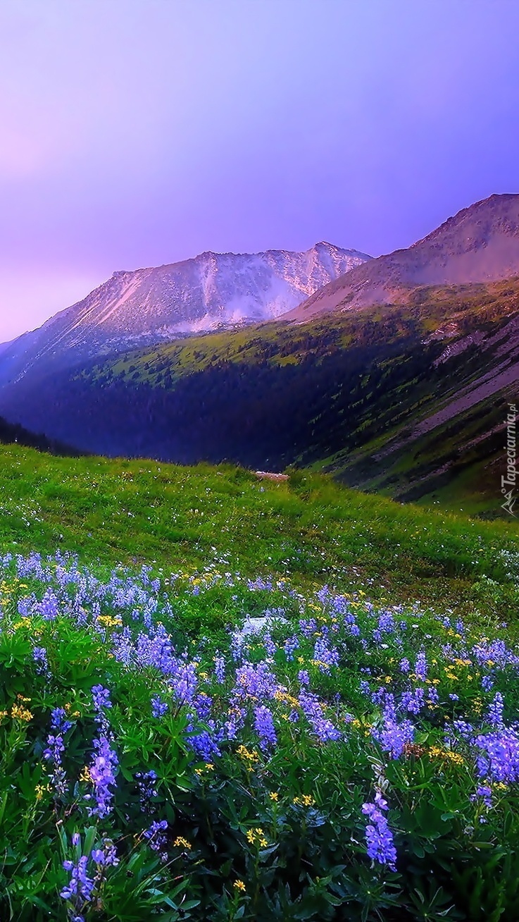 Edytor tapety: Niebieski łubin w górach