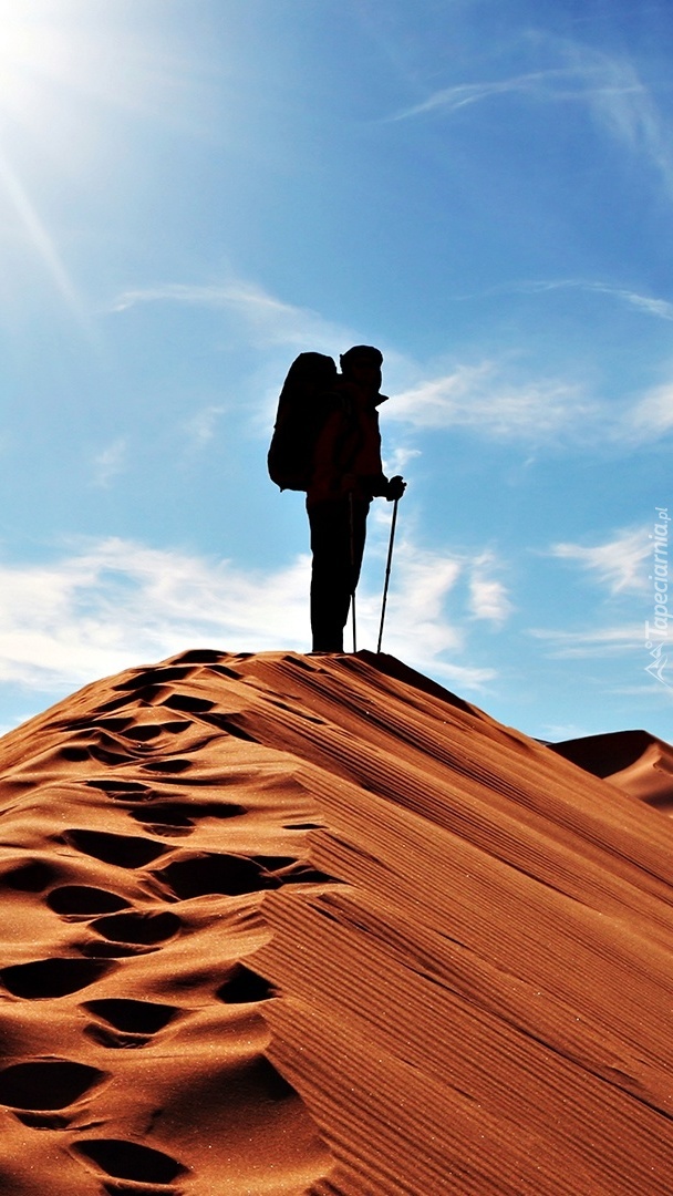 Edytor tapety: Turysta na pustynnej wydmie