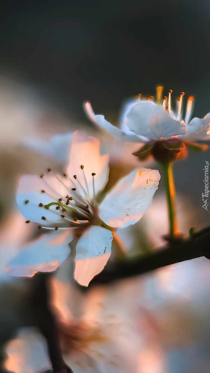 Edytor tapety: Dwa białe kwiaty drzewka owocowego