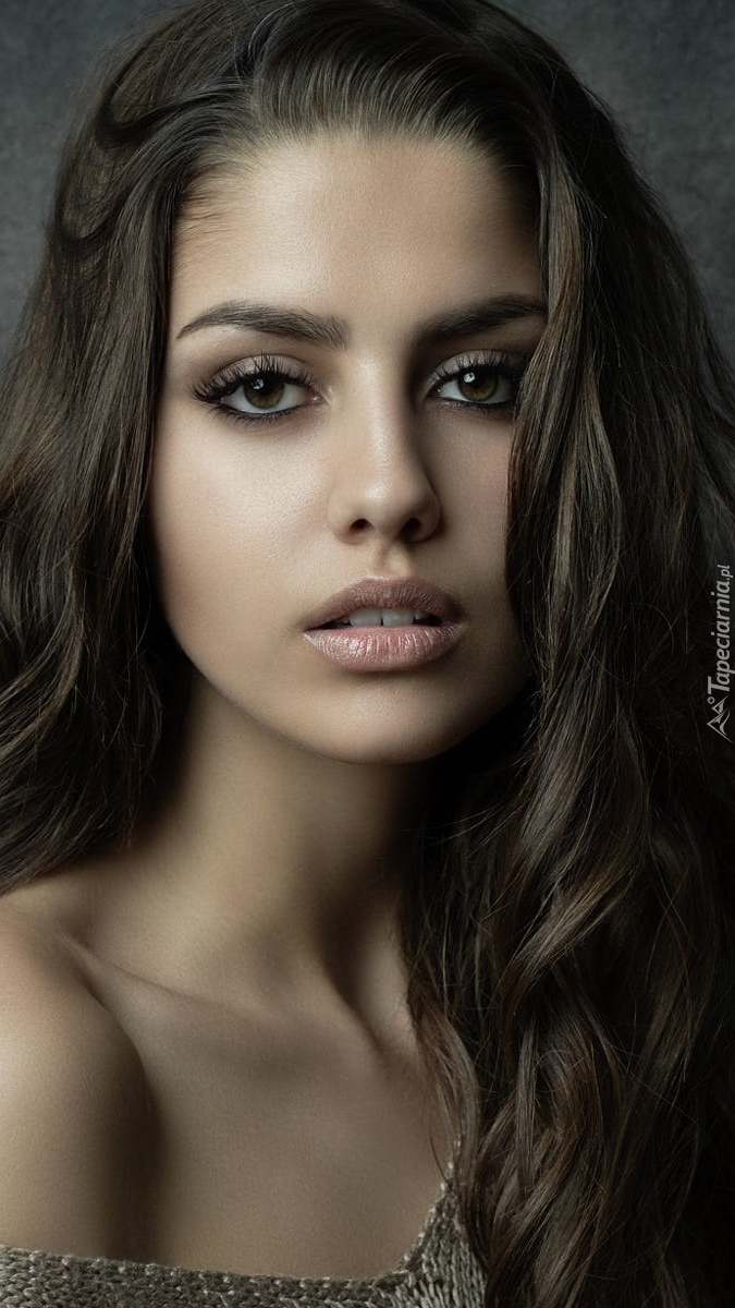 Edytor tapety: Czarująca szatynka z długimi włosami