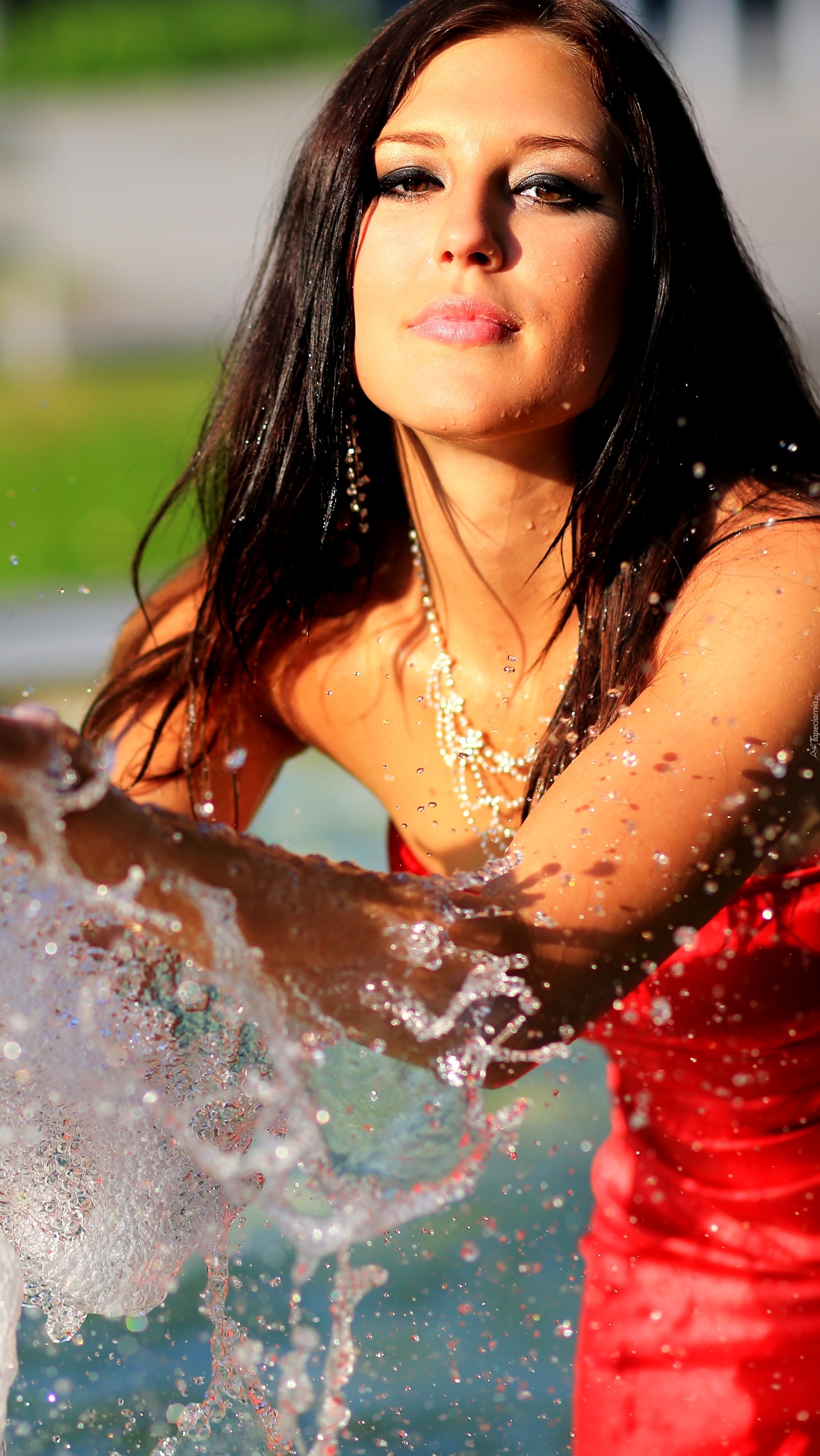 Edytor tapety: Kobieta w czerwonej sukience w wodzie