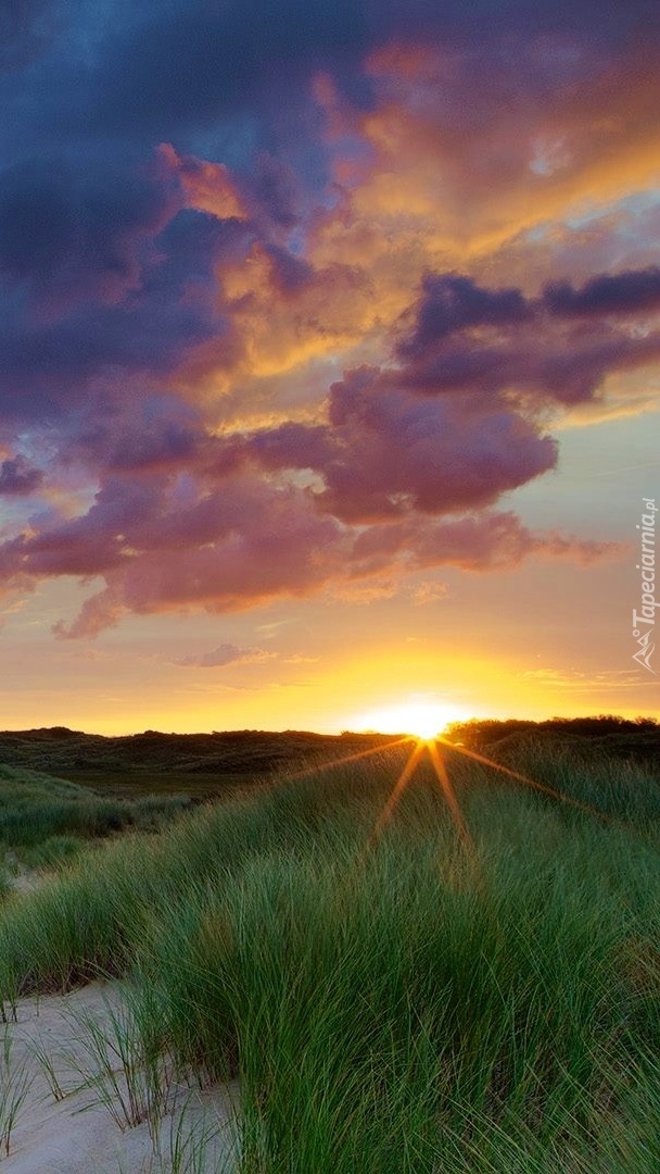 Edytor tapety: Chmury nad wydmami o zachodzie słońca