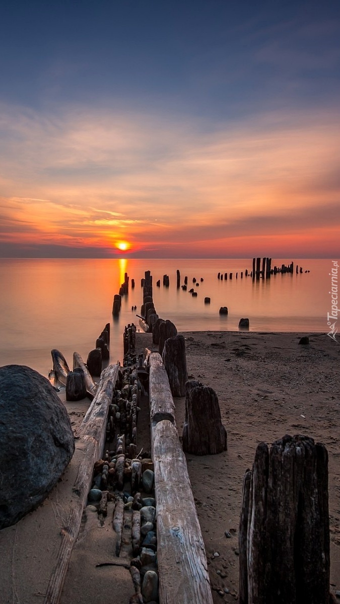 Edytor tapety: Morze i plaża o zachodzie słońca