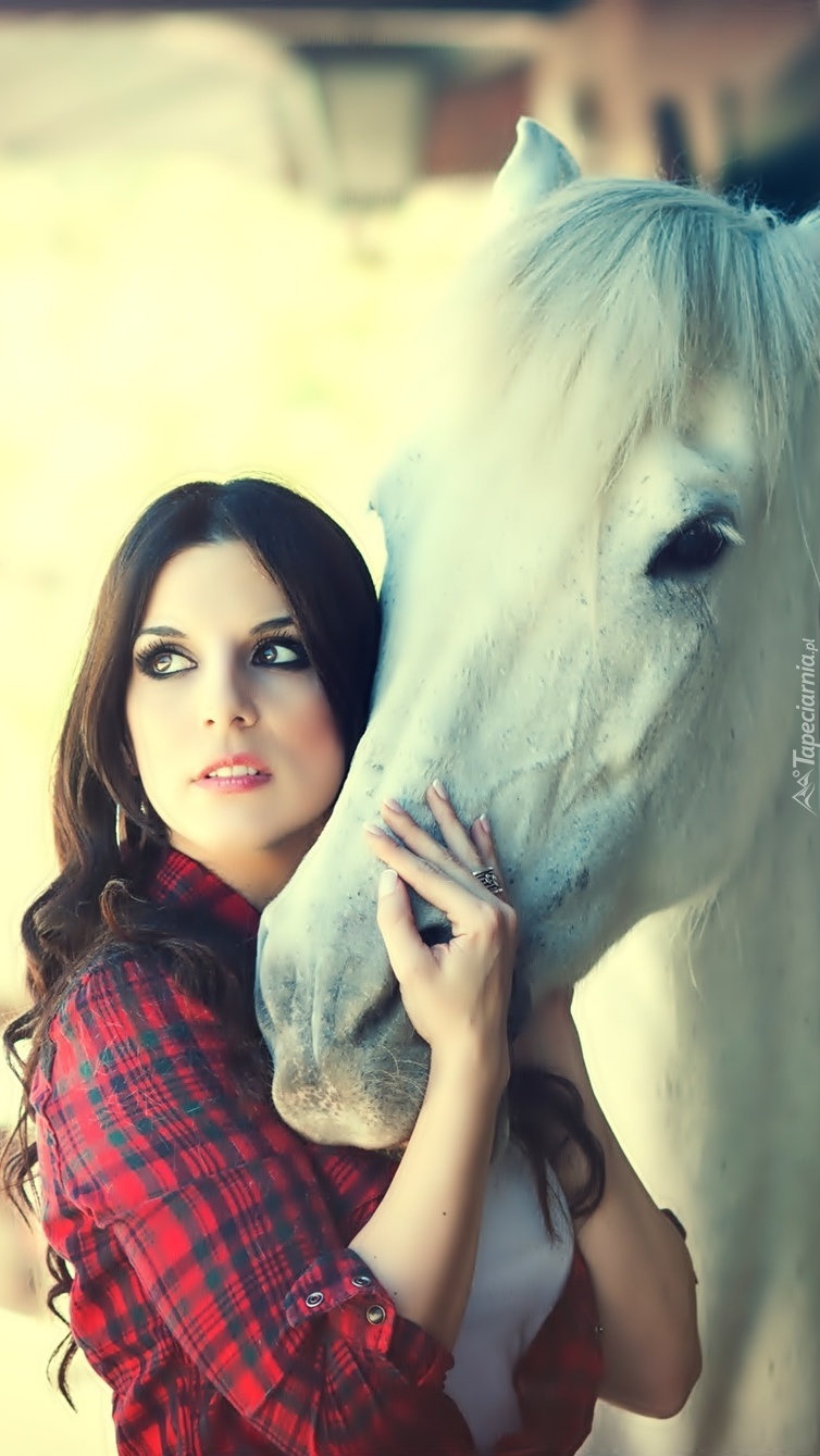 Edytor tapety: Kobieta z białym koniem
