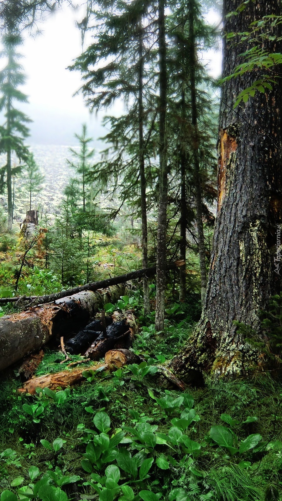 Edytor tapety: Przewrócone drzewo w lesie