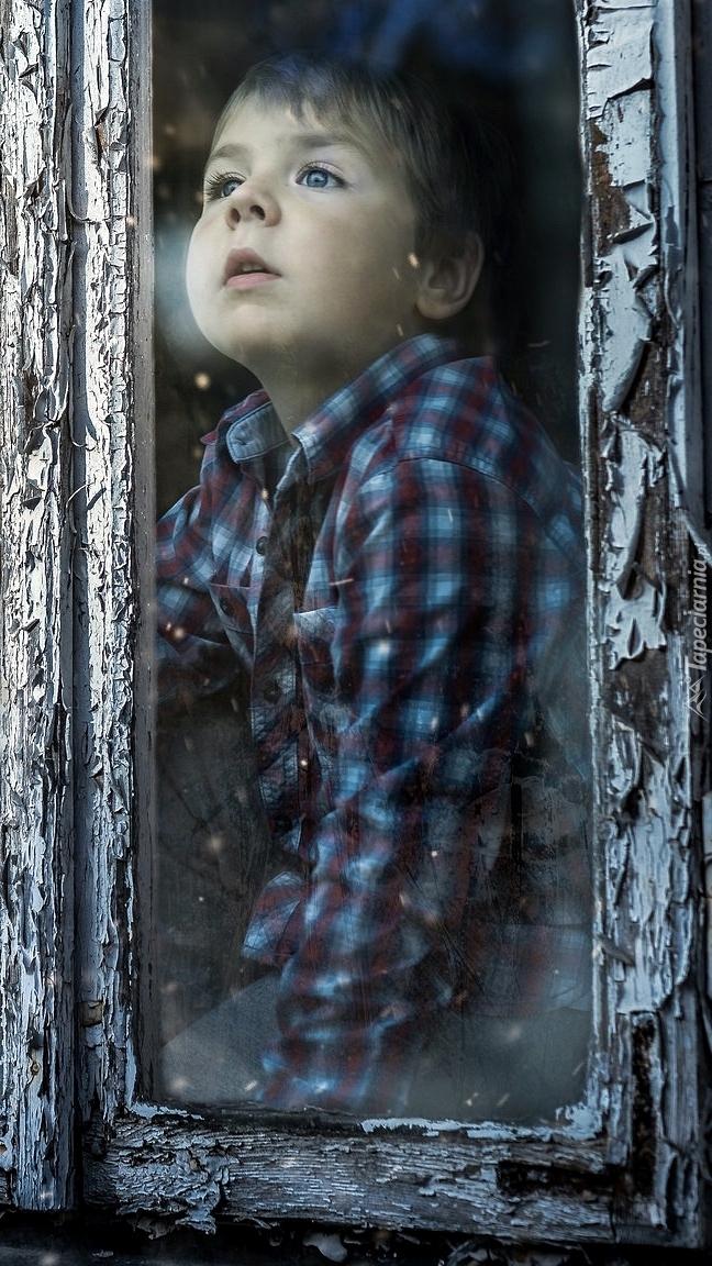 Edytor tapety: Chłopczyk patrzy przez okno