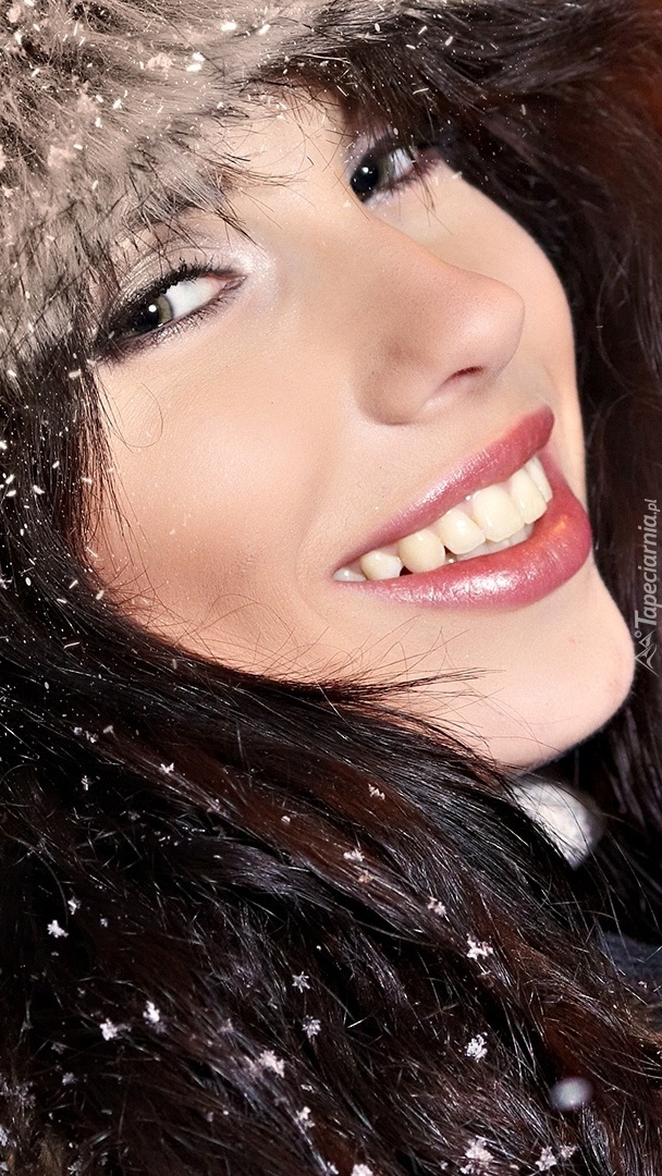 Edytor tapety: Spojrzenie kobiety w zimowej czapce