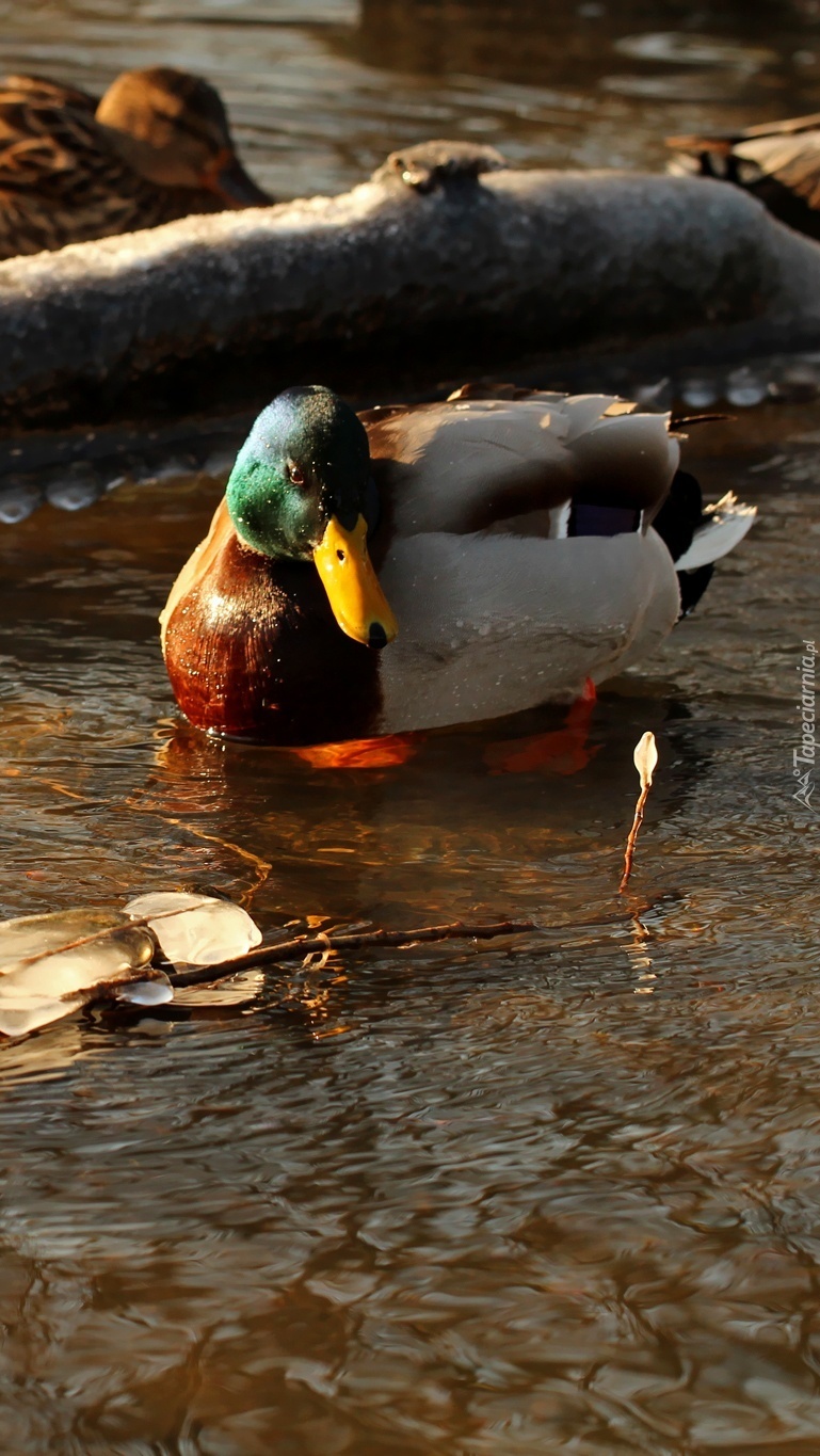 Edytor tapety: Kaczka krzyżówka zimą w wodzie