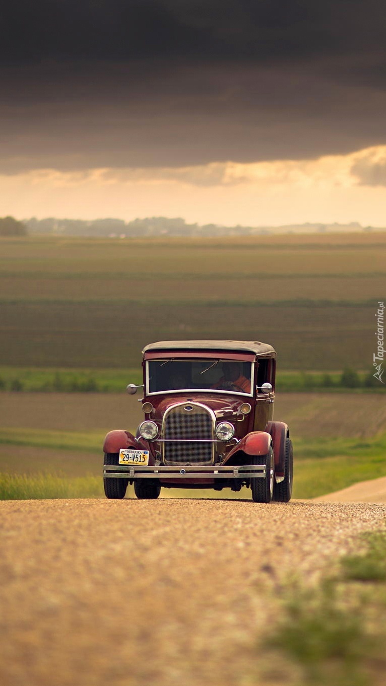 Edytor tapety: Zabytkowy samochód na polnej drodze