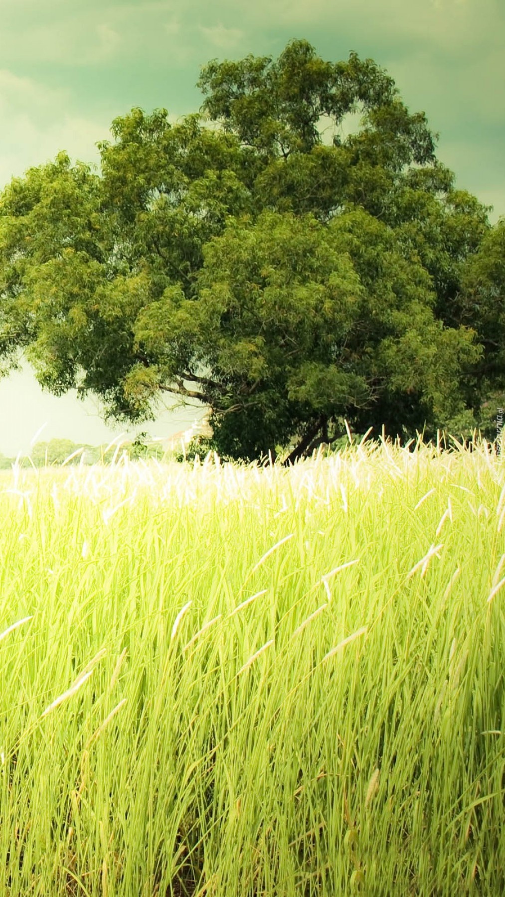 Edytor tapety: Drzewo na łące latem