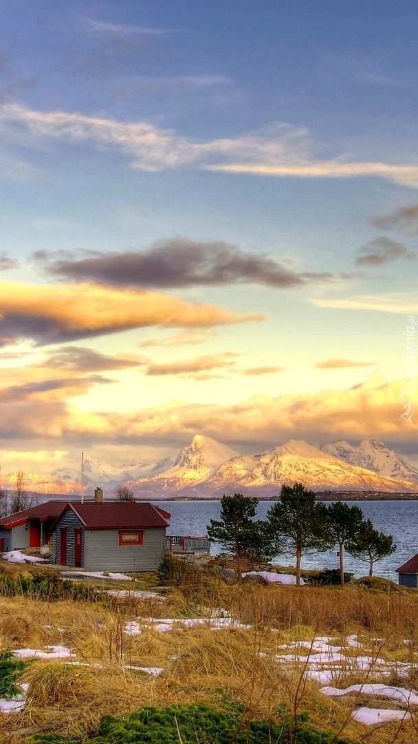 Edytor tapety: Dom nad jeziorem zimową porą