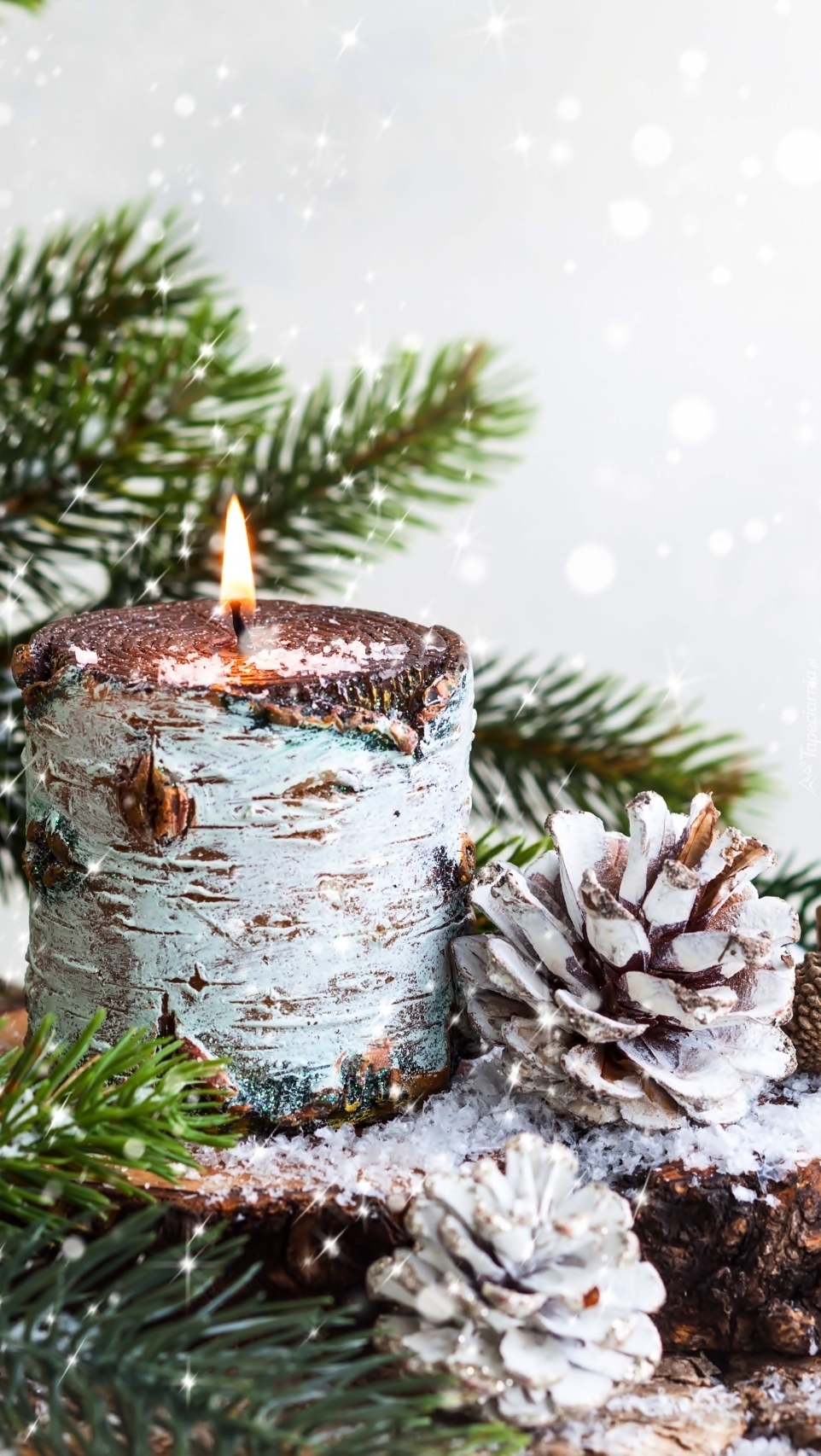 Edytor tapety: Drewniana płonąca świeczka świąteczna