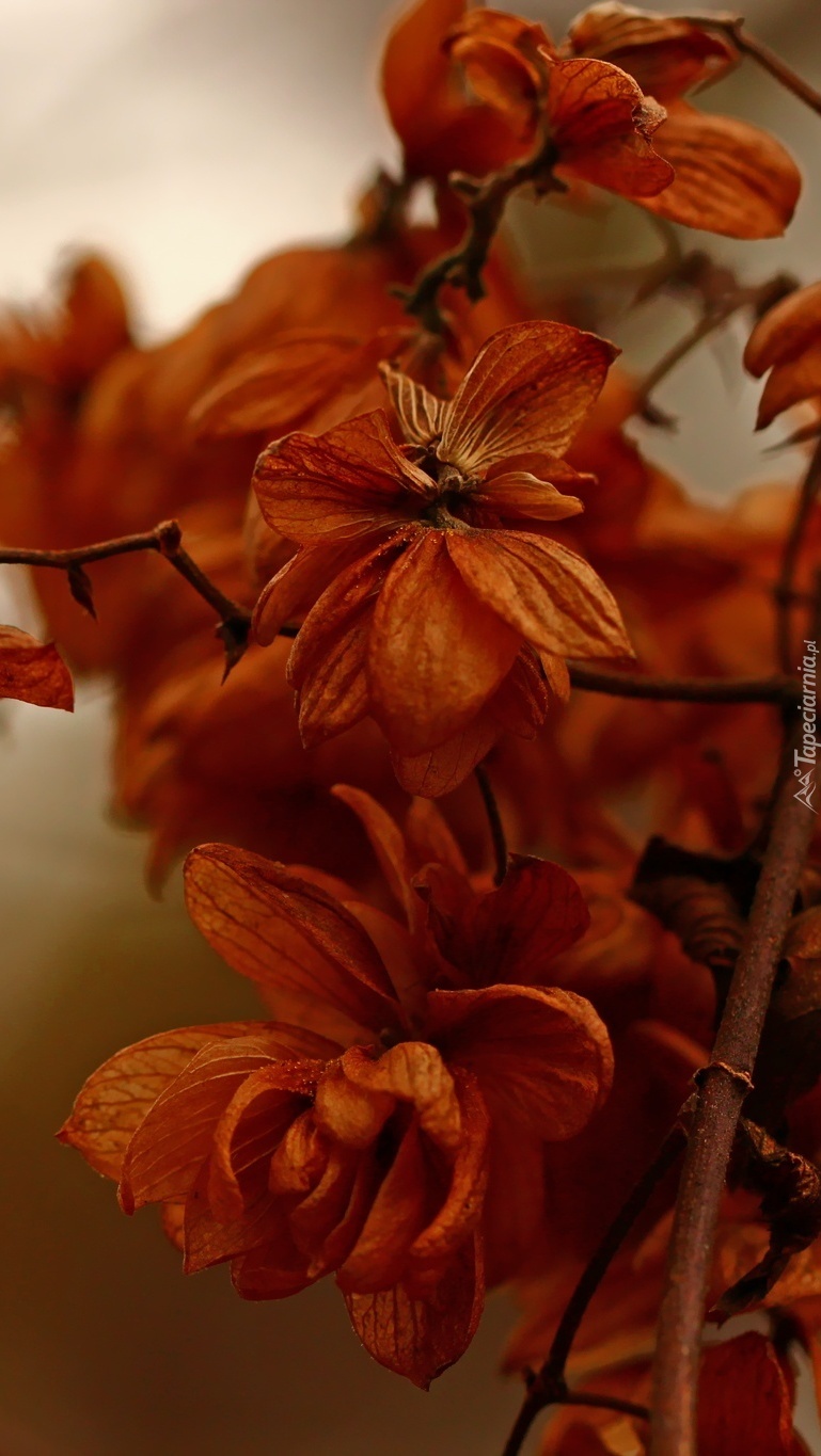 Edytor tapety: Usychające kwiaty na gałęzi