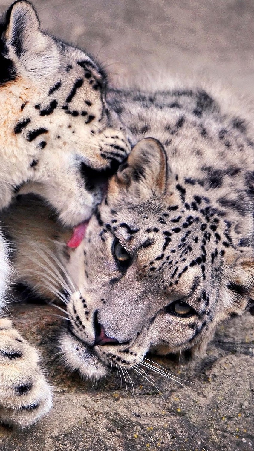 Edytor tapety: Dwa Irbisy śnieżne na skale