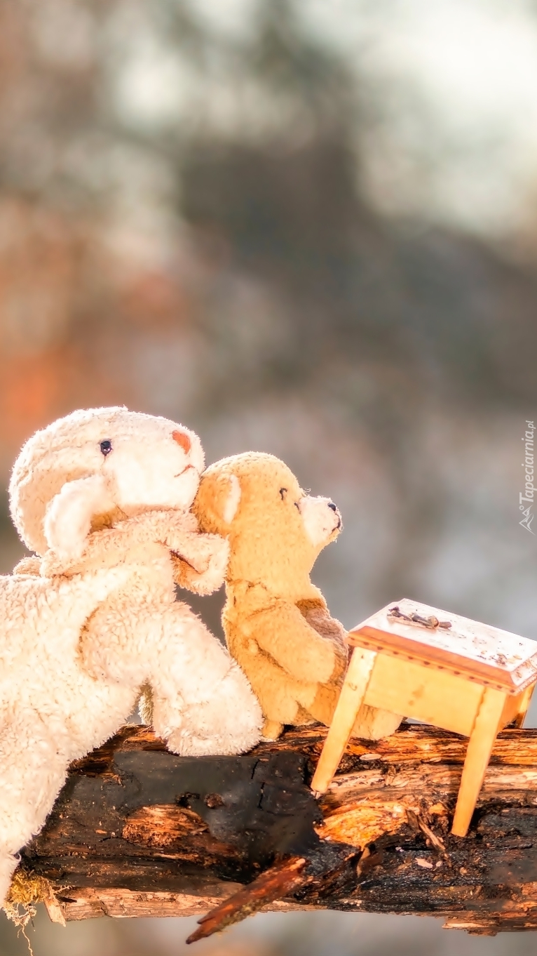 Edytor tapety: Pluszaki siedzą na drzewie przy stoliku