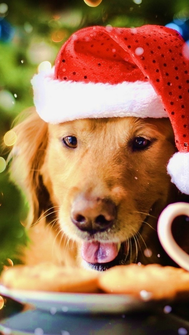 Edytor tapety: Golden retriever w czapce Mikołaja