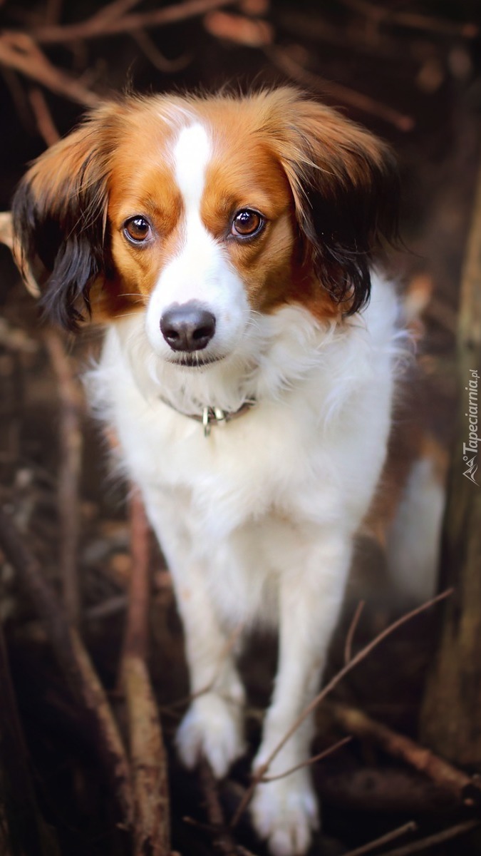 Edytor tapety: Biało-rudy pies rasy płochacz holenderski