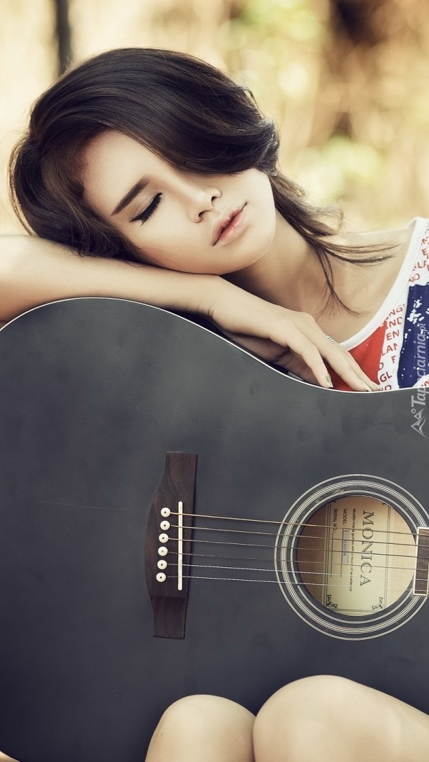 Edytor tapety: Kobieta śpiąca na gitarze