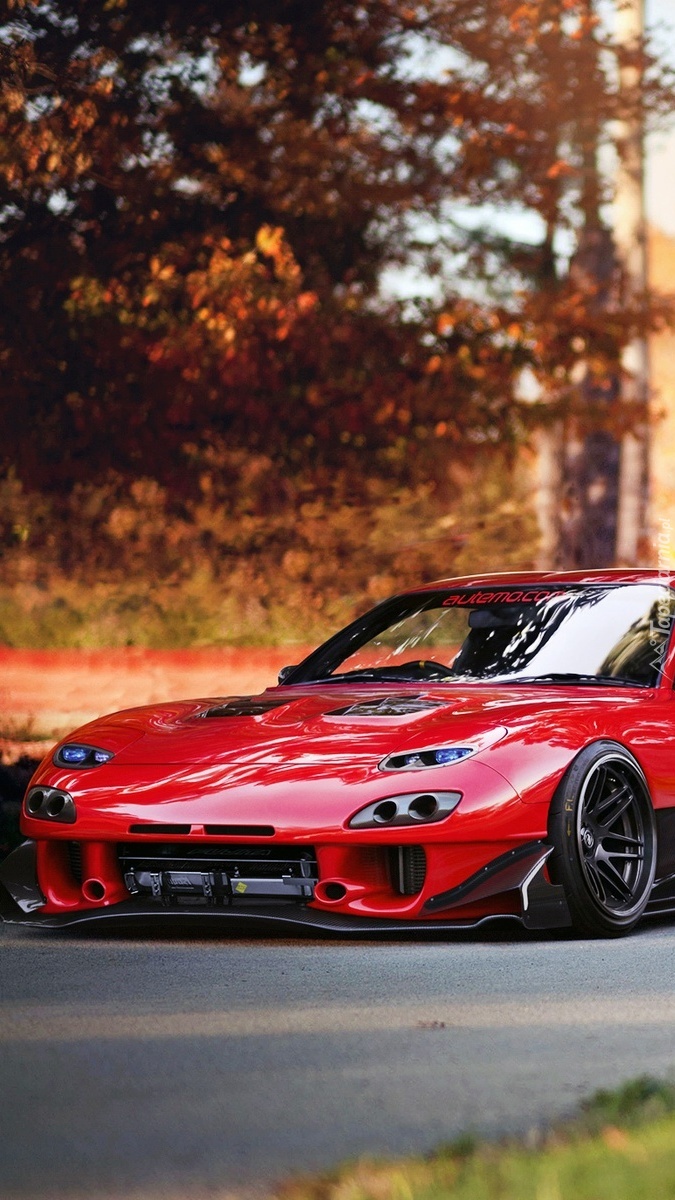 Edytor tapety: Czerwona Mazda RX-7 na drodze