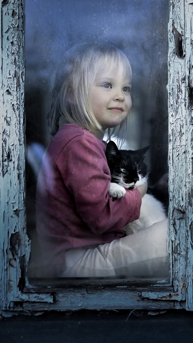 Edytor tapety: Dziewczynka z kotkiem w oknie