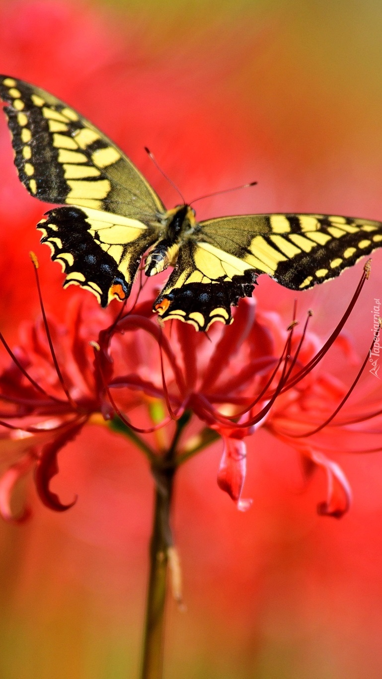 Edytor tapety: Motyl na czerwonym kwiatku