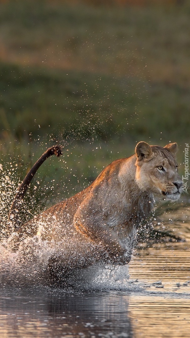 Edytor tapety: Lew biegnący po wodzie