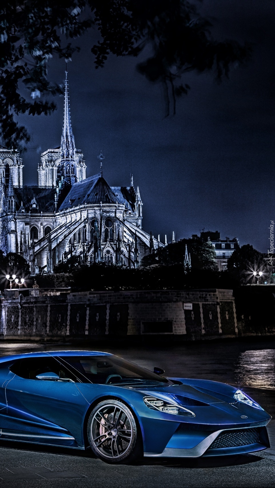 Edytor tapety: Auto nad rzeką nocą