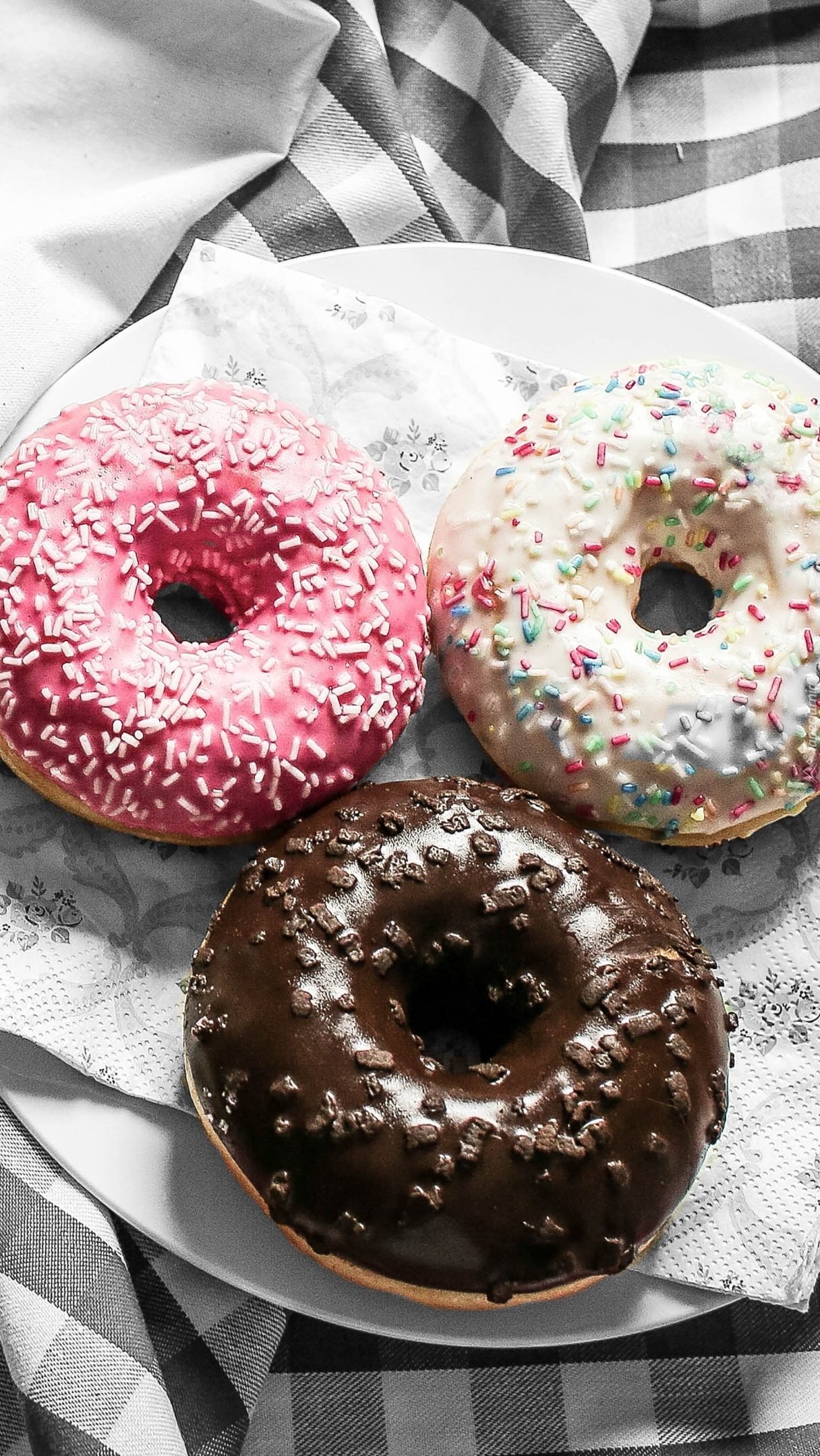 Edytor tapety: Trzy smakowite pączki z dziurką