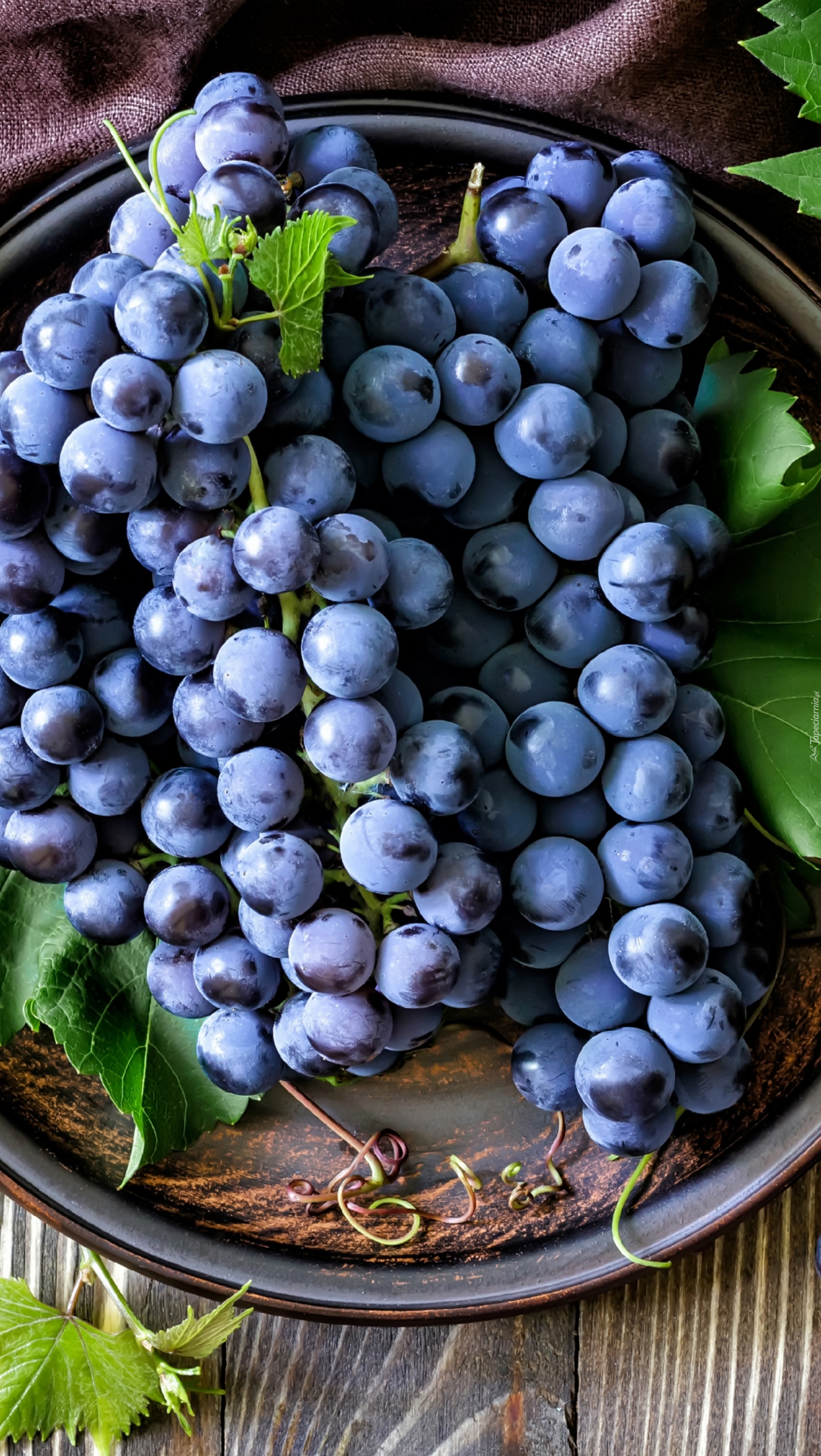 Edytor tapety: Ciemne winogrona na tacy