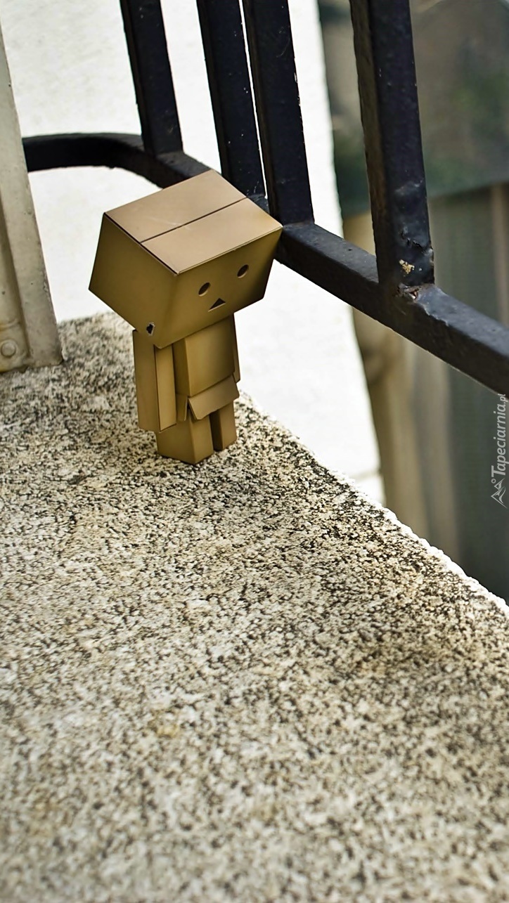 Edytor tapety: Smutny Danbo stoi na balkonie