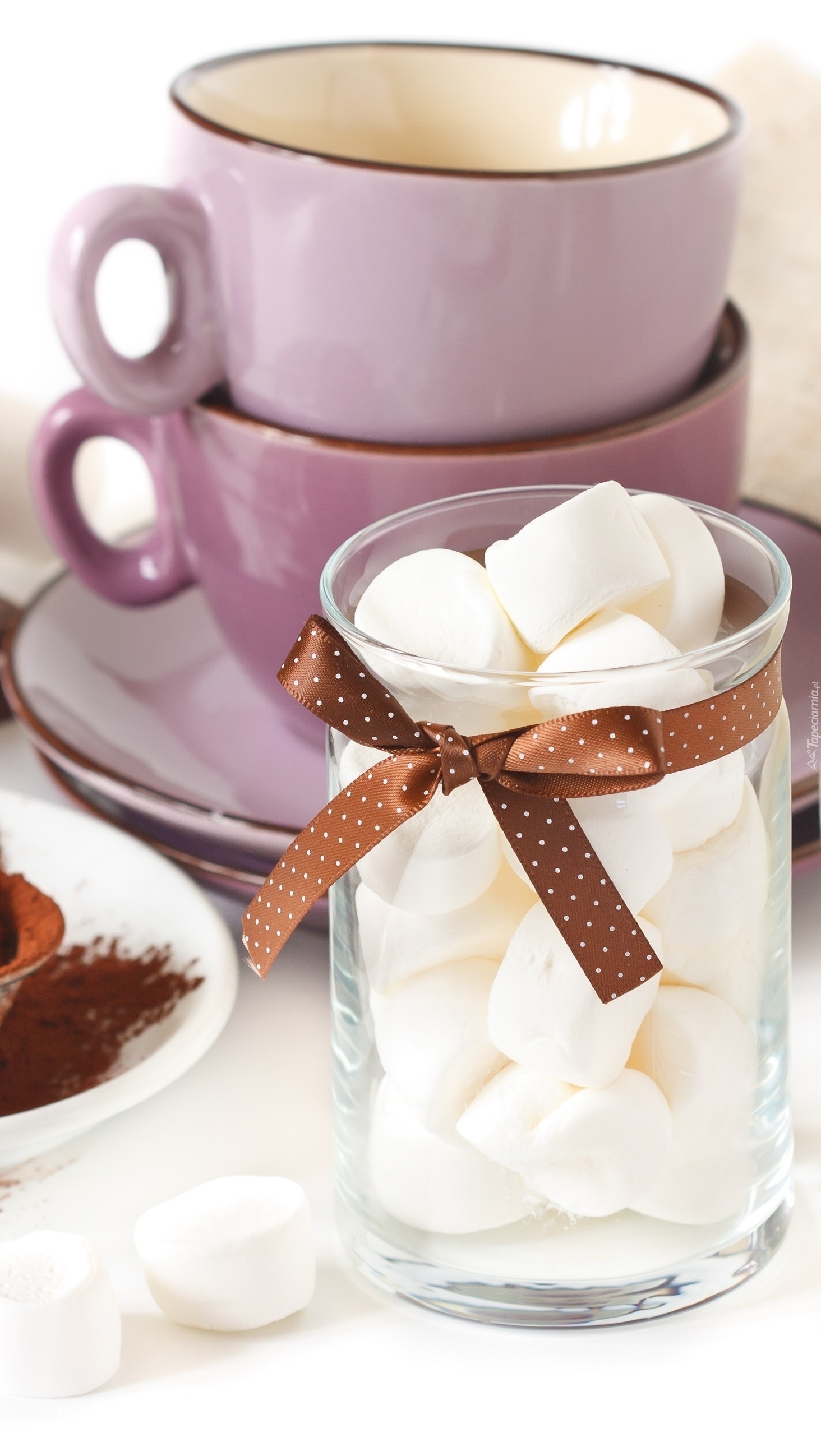 Edytor tapety: Pianki w naczyniu obok filiżanek