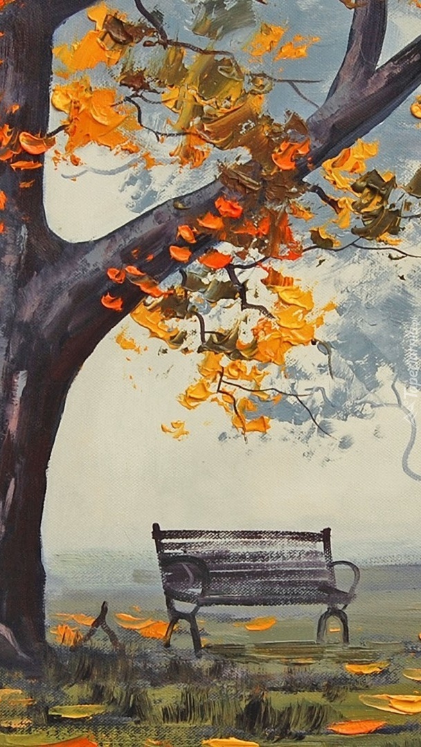 Edytor tapety: Rysunek ławki obok jesiennego drzewa