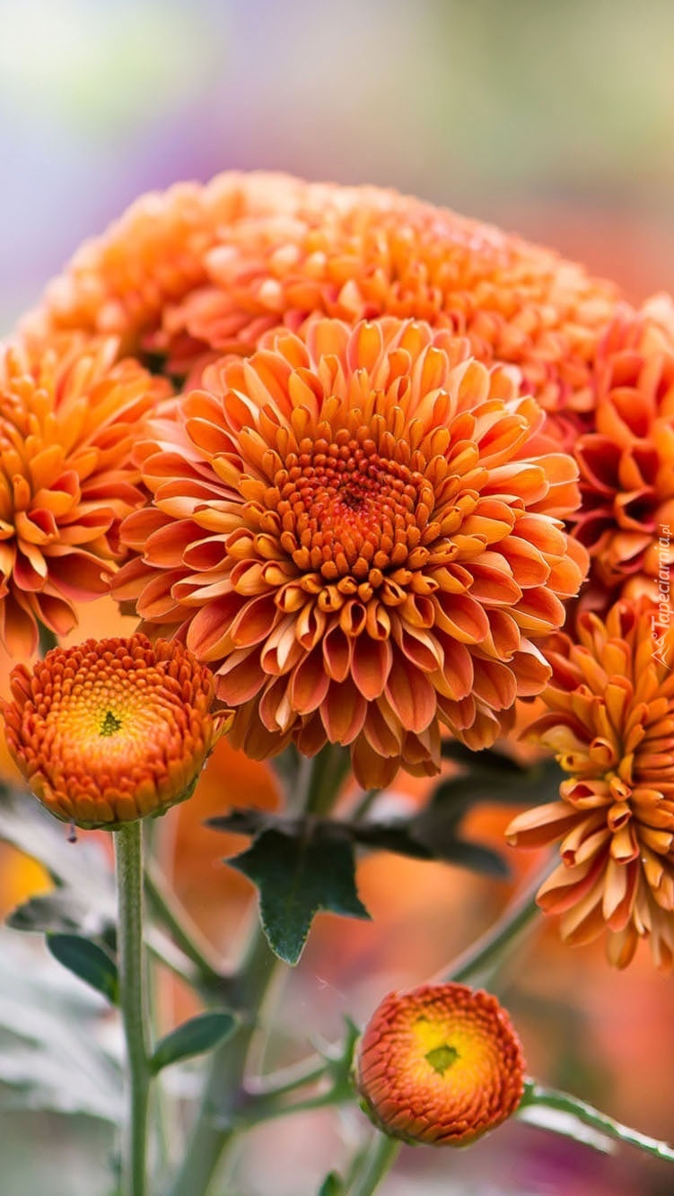 Edytor tapety: Pomarańczowe chryzantemy duże i małe