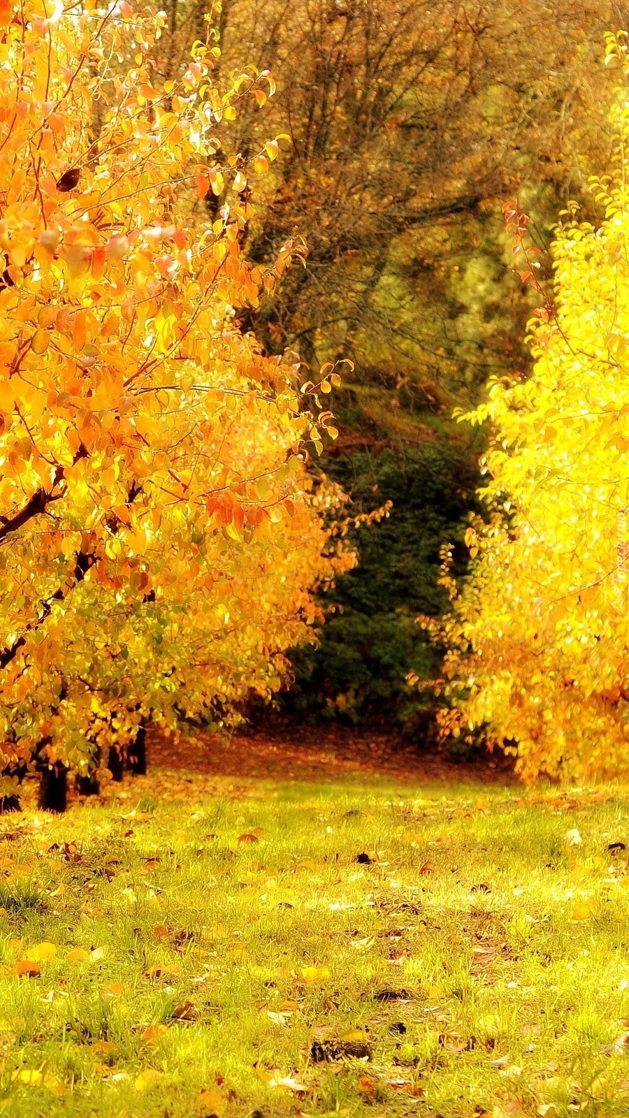 Edytor tapety: Jesienny las z żółtymi liśćmi